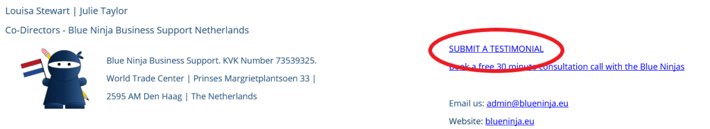 Use your testimonials on your website. We have a dedicated testimonial page to add new ones as they come in – https://bn-old.blueninja.eu/testimonials/. We have a plugin called Strong Testimonials that allows us to add testimonials to a list and with a piece of shortcode it populates the testimonials page as new testimonials are added.